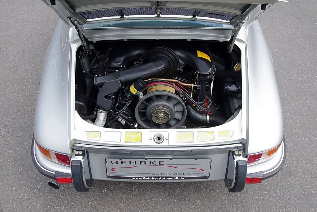 - Motorseitig ist das Fahrzeug mit einem 2,8 L Motor ausgestattet, der vor rund 500 km ohne Rücksicht auf Entstehungskosten von einer Fachfirma aufgebaut wurde. Mit Einzeldrosselanlage, Doppelzündung, RS Thermostat und sämtlichen Komponenten entspricht der Motoraufbau eines 2,8 RSR Triebwerks basierend auf einem 911 S Block. Kombiniert ist das ganze kraftstoffseitig mit einer Bosch MFI2ECI mechanischen Einspritzpumpe.